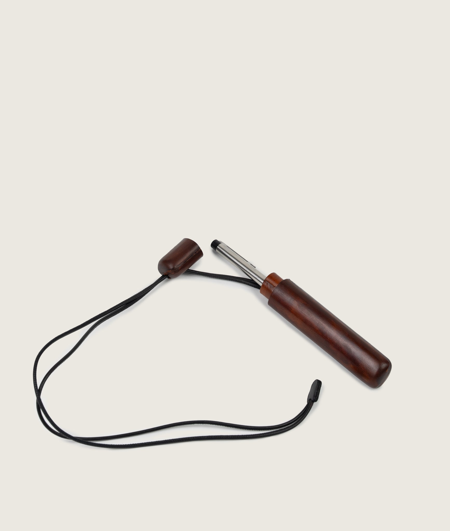 Each Pen Case is made from Vegetable-Tan-Cow Leather and is entirely hand-molded over a structural base and meticulously hand-painted to create subtle shading effects that evoke the appearance and warmth of wood. The Pen Case has an object-like character and can be worn around the neck. A practical and elegant detail: It not only adds a stylish touch but also ensures your pen is always within reach-an ideal complement to our Notebook Cover.